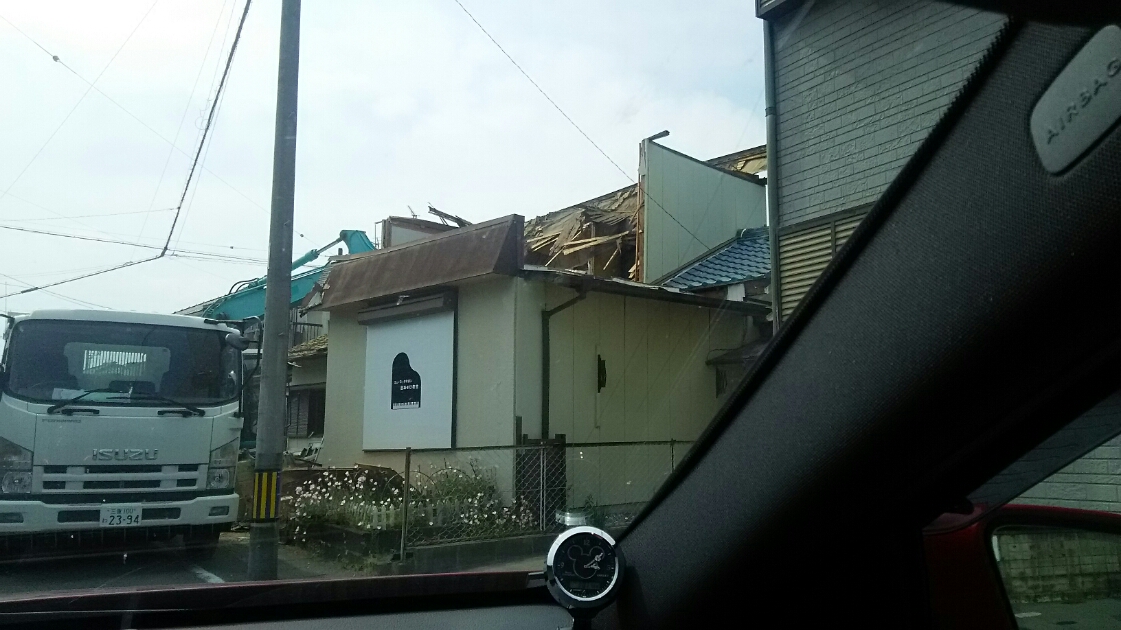 今日から機械を入れての解体です。 一年間教室を継続してこられたのも このお家のお陰です。 以前に住んでいらした散髪やさんの方も ここで理容師として一生懸命やってこられた大切な思い出の地でしょう。 成果ある地に根付けるよう 気持ちを引き締めました。 今のところ 作業に携わってくださる方に頑張っていただきましょう!